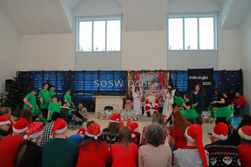 W naszym ośrodku odbyło się wyjątkowe i długo wyczekiwane spotkanie ze Świętym Mikołajem, które wprowadziło wszystkich uczestników w prawdziwie świąteczny nastrój. Wydarzenie zgromadziło wszystkich uczniów i nauczycieli a wspólnie spędzony czas wypełniony był radością, uśmiechem i dobrą zabawą. Program spotkania rozpoczął się od części artystycznej przygotowanej przez uczniów, którzy z dużym zaangażowaniem zaprezentowali krótkie przedstawienie o tematyce świątecznej, a także układy taneczne. Prezentacje spotkały się z entuzjastycznym przyjęciem publiczności oraz dostarczyły wielu pozytywnych emocji. Zwieńczeniem wydarzenia było wręczenie prezentów. Święty Mikołaj obdarował upominkami nie tylko uczniów, ale również nauczycieli i pracowników ośrodka, co spotkało się z miłym zaskoczeniem i radością. Po wspólnym pożegnaniu Święty Mikołaj udał się w dalszą podróż, niosąc radość i świąteczny uśmiech innym, a my z niecierpliwością już dziś czekamy na kolejne spotkanie ze Świętym Mikołajem w przyszłym roku.